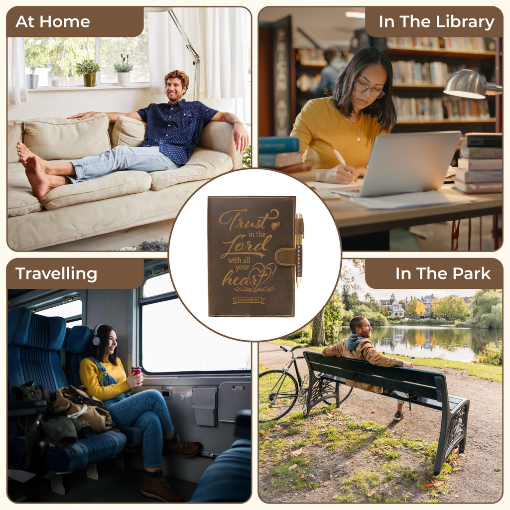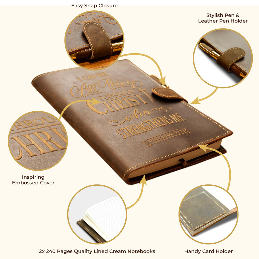 • INSPIRATIONAL DESIGN: Featuring the empowering quote Josh. 1:9 quote ‘Be Strong & Courageous” and an intricately embossed design, this refillable leather journal inspires strength, faith, and daily reflection - ideal for personal devotionals, writing, or quiet moments