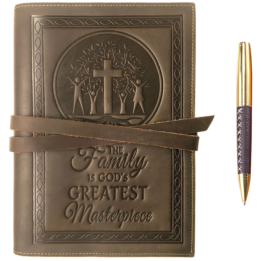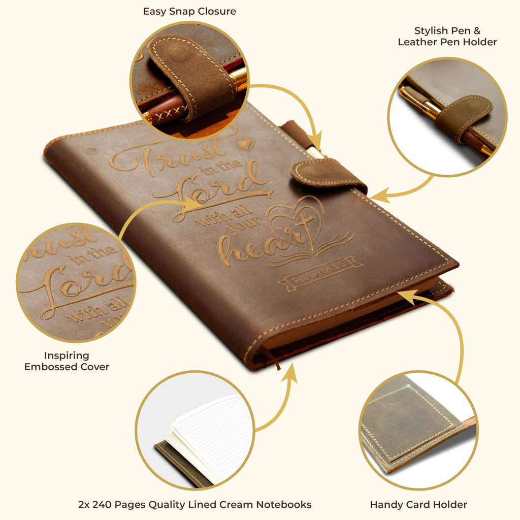 Sovereign-Gear Religious Refillable Leather Journal – Religious Writing Notebook for Women & Men, Handmade Leather Bound Diary with Blank Pages & Designer Pen