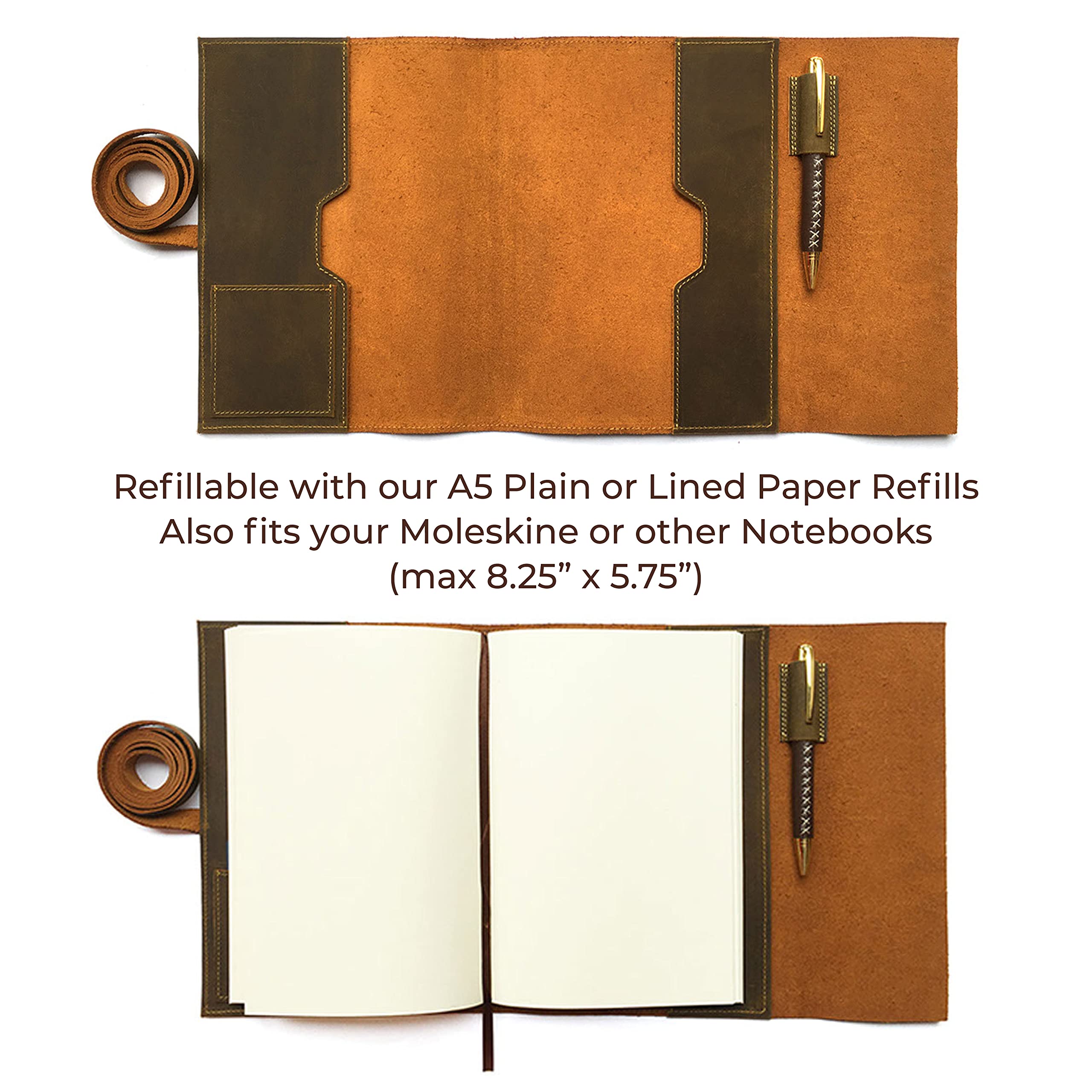 • GENUINE LEATHER CRAFTSMANSHIP: Made from durable, full-grain buffalo leather with a hand-stitched finish and secure closure. The natural distressed look evolves over time, creating a journal that ages beautifully with every use